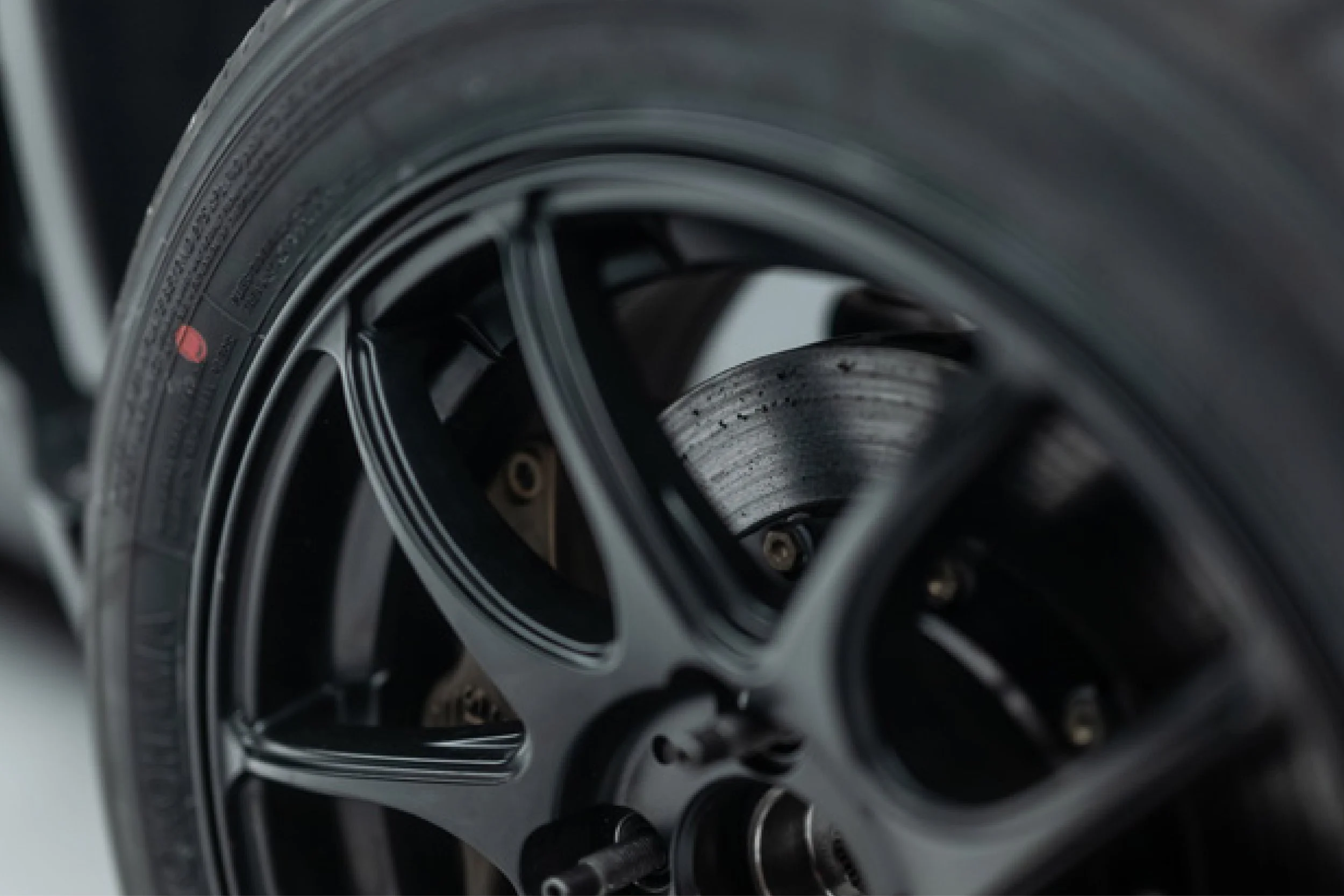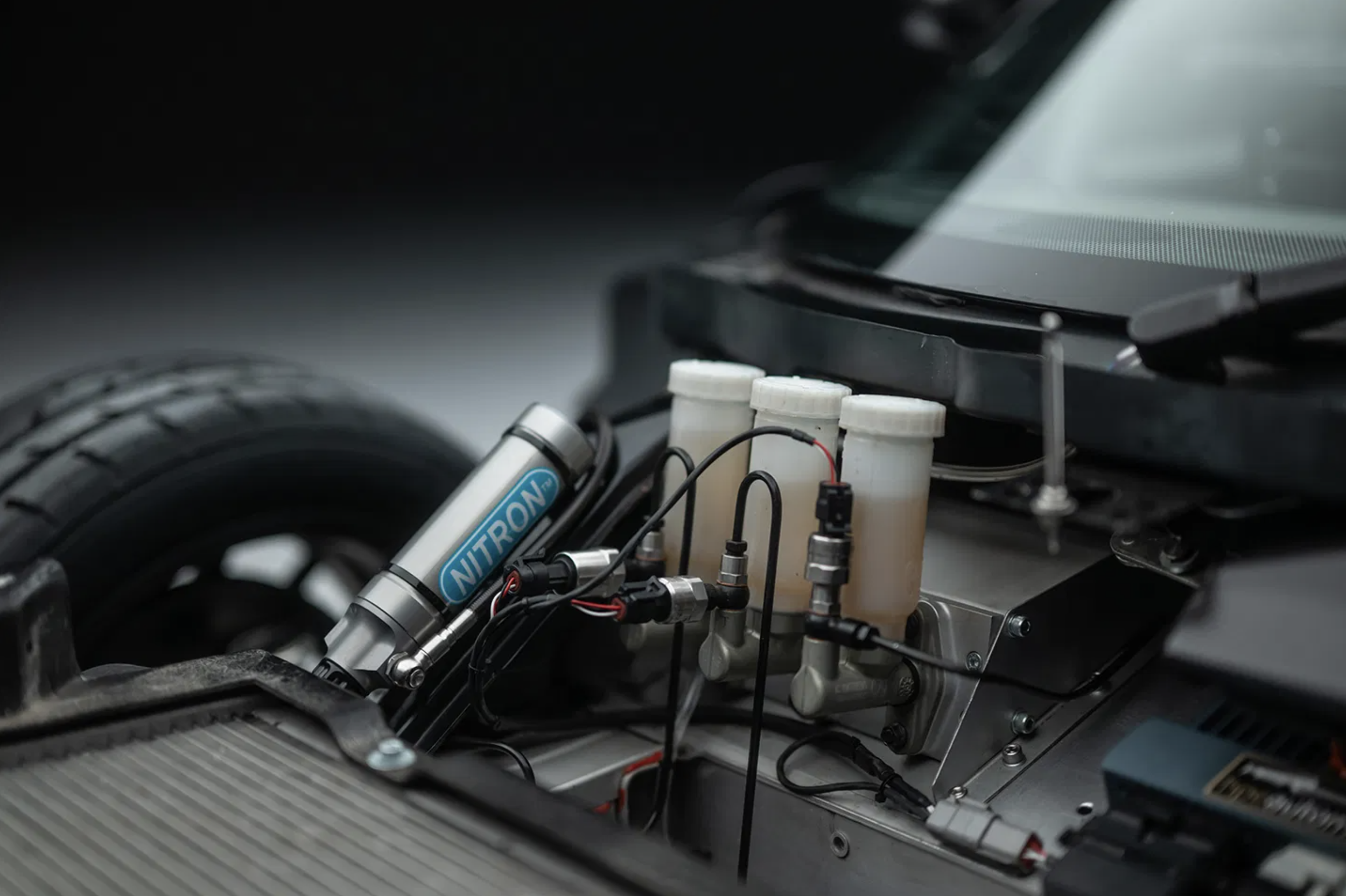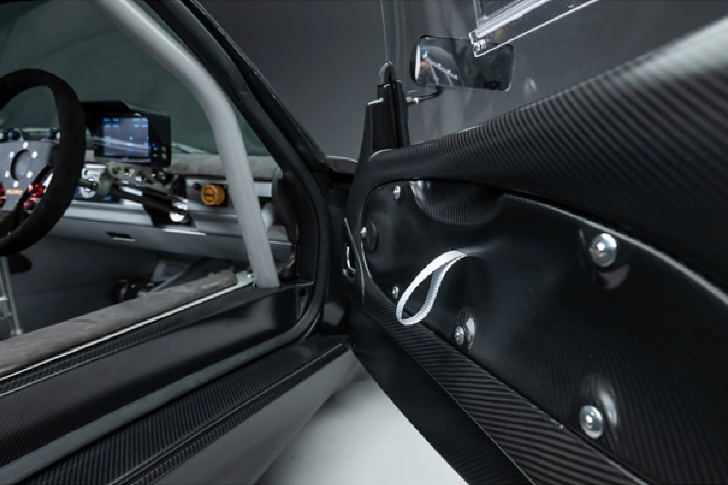 The suspension and braking systems receive the same level of attention, with carbon brake discs and pads, completely rebuilt and subtly re-engineered brake calipers, motorsport-grade steel brake lines, and flexible hoses. All are hooked up to a dual-cylinder pedal box with an integral brake bias adjuster, displaying the bias in real time on the dash display.